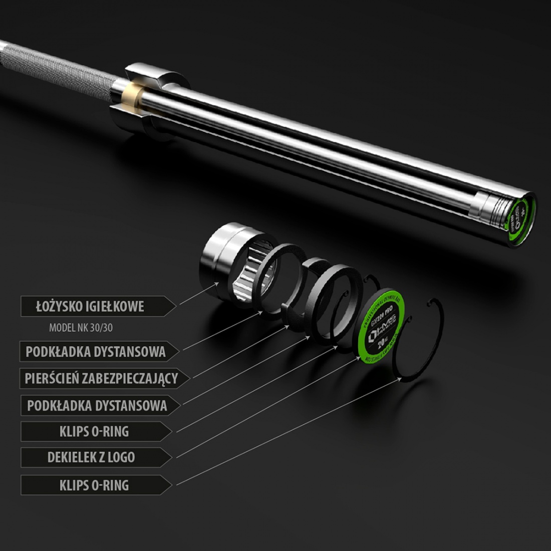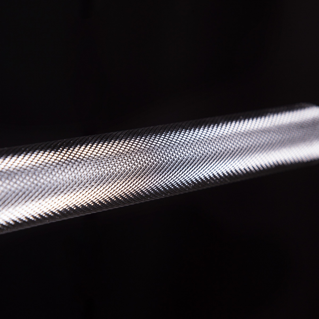 Dzięki łożyskom igiełkowym ruch obrotowy jest płynny, co znacząco poprawia komfort i bezpieczeństwo ćwiczeń. Chromowana powierzchnia nie tylko wygląda świetnie, ale także chroni stal przed korozją i zużyciem. Ten gryf został zaprojektowany z myślą o długiej, intensywnej eksploatacji – sprawdzi się zarówno w domowej siłowni, jak i w klubie fitness.