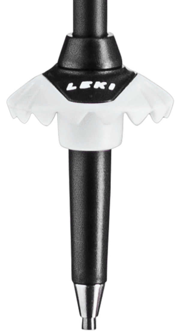 Precyzyjna końcówka oraz alpejski talerzyk zapewniają stabilne i punktowe osadzenie kija w śniegu, co dodatkowo zwiększa kontrolę i przewidywalność pracy sprzętu na twardych trasach.