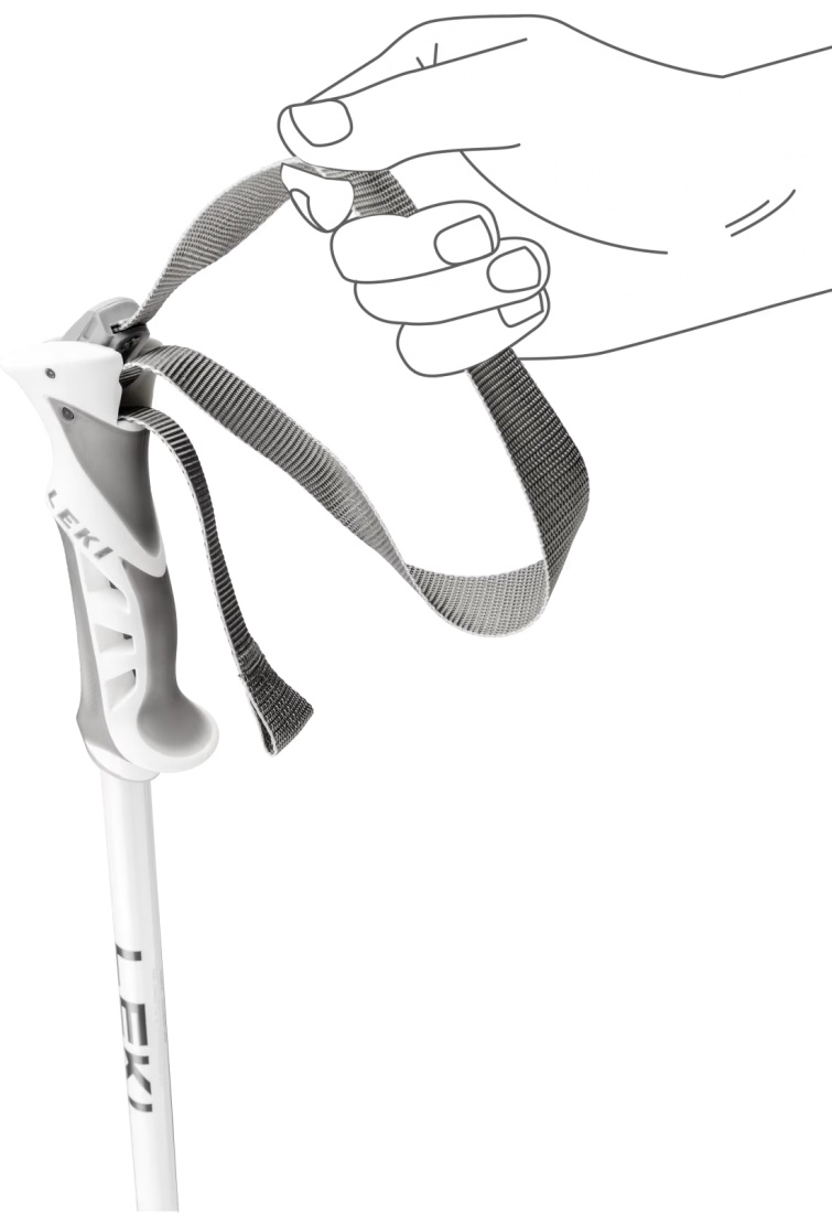 Ergonomiczny uchwyt został zaprojektowany tak, aby zapewniać pewny i komfortowy chwyt, nawet podczas dłuższych dni na stoku. Miękki pasek nadgarstkowy dopasowuje się do dłoni i rękawic, zwiększając komfort użytkowania i kontrolę nad kijami.